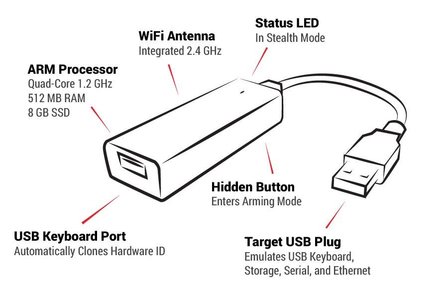 Simultaneously emulate numerous trusted USB devices. Pass through and inject keystrokes with the HID attack mode. Gain network access to the target with the Ethernet attack mode. Present the Key Croc as a flash drive with the Storage attack mode. Even emulate a serial device for some crafty attacks using the Serial attack mode.